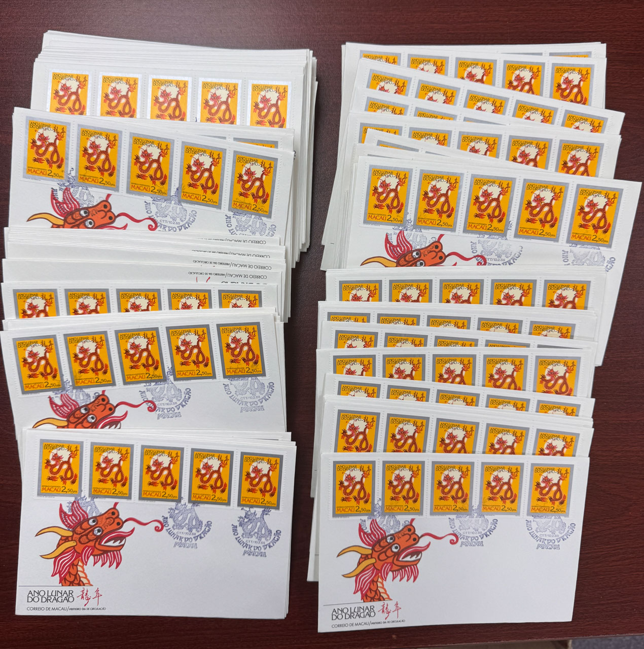 1988年2月10日澳門龍年小本票内芯首日封100枚,均無地址,品相上佳。