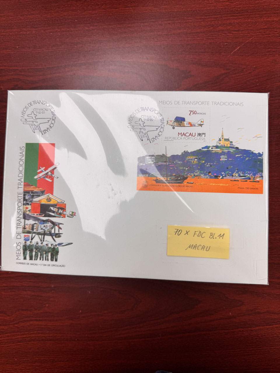 1989年10月9日澳門水上飛機小型張首日封70枚,品相上佳。