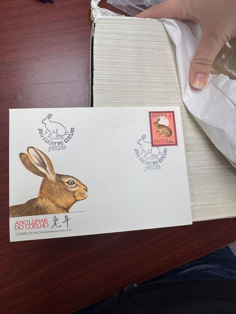 1987年澳門兔年首日封約250枚,均無地址,微黃上品。