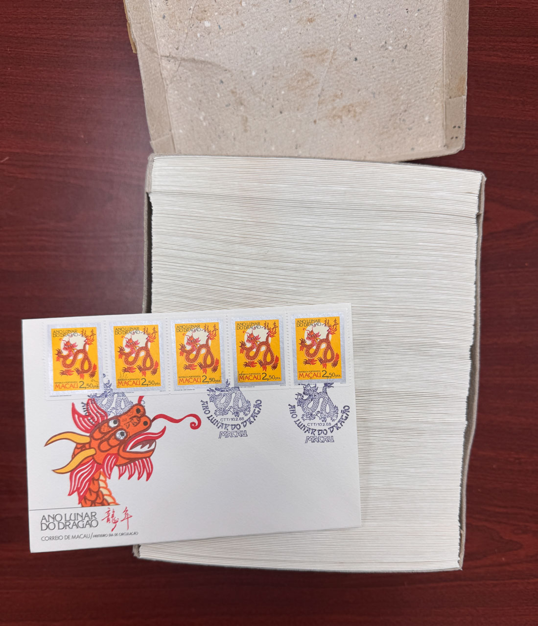 1988年2月10日一盒約250枚澳門龍年首日封,品相上佳。