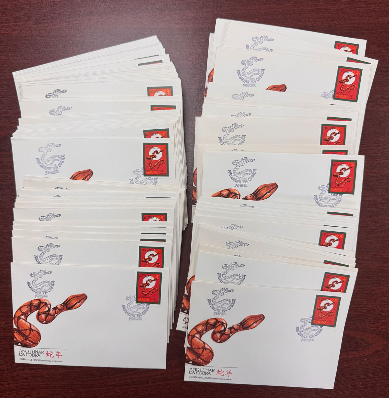 1989年1月20日澳門蛇年首日封100枚,均無地址,品相上佳。